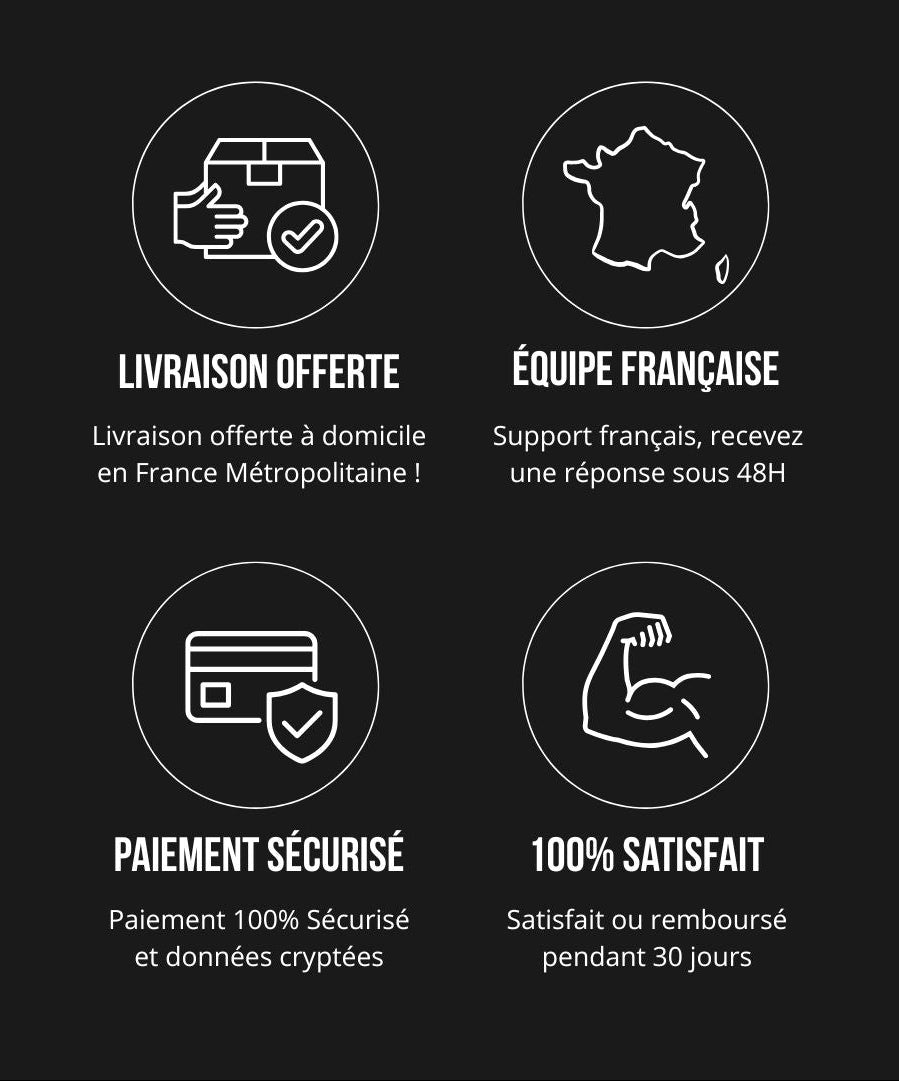 Notre objectif est que chaque client soit entièrement satisfait de son achat. Si ce n’est pas le cas, faites-le-nous savoir et nous ferons de notre mieux pour trouver une solution avec vous.